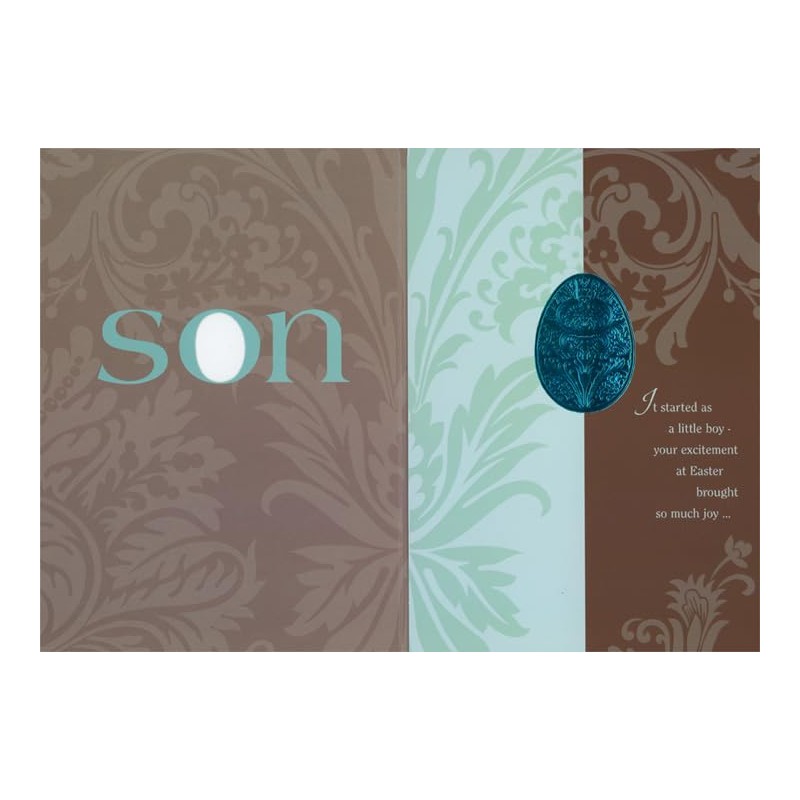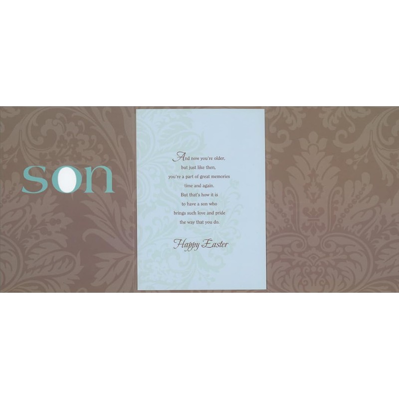 Designer Greetings Brown and Light Green Halves with Die Cut 'O' Window Easter Card for Son