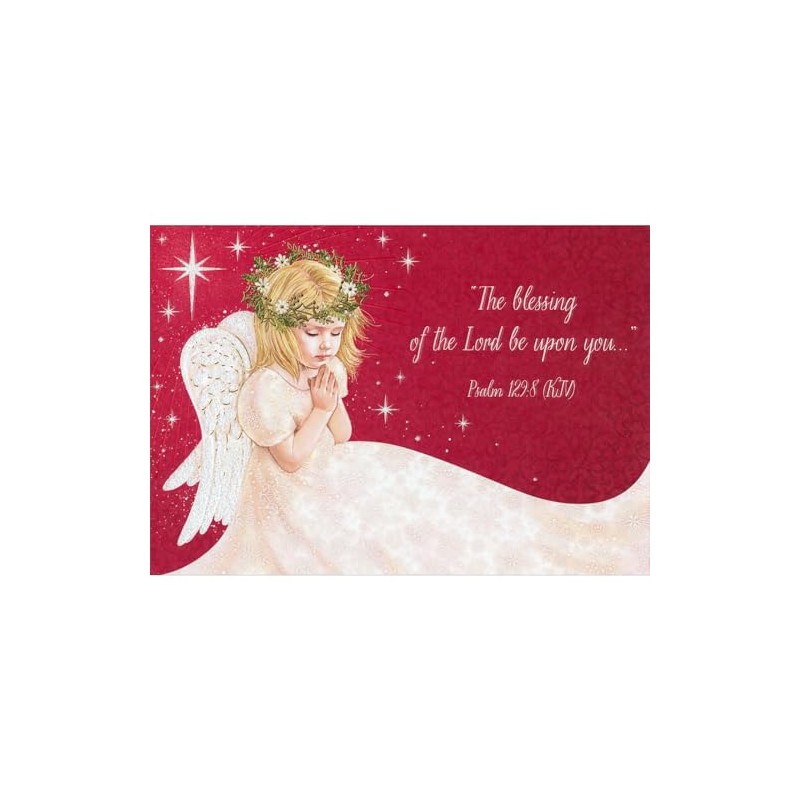 Designer Greetings Praying Angel Child with Crown of Gold Foil Flowers on Red Box of 15 Religious Christmas Cards