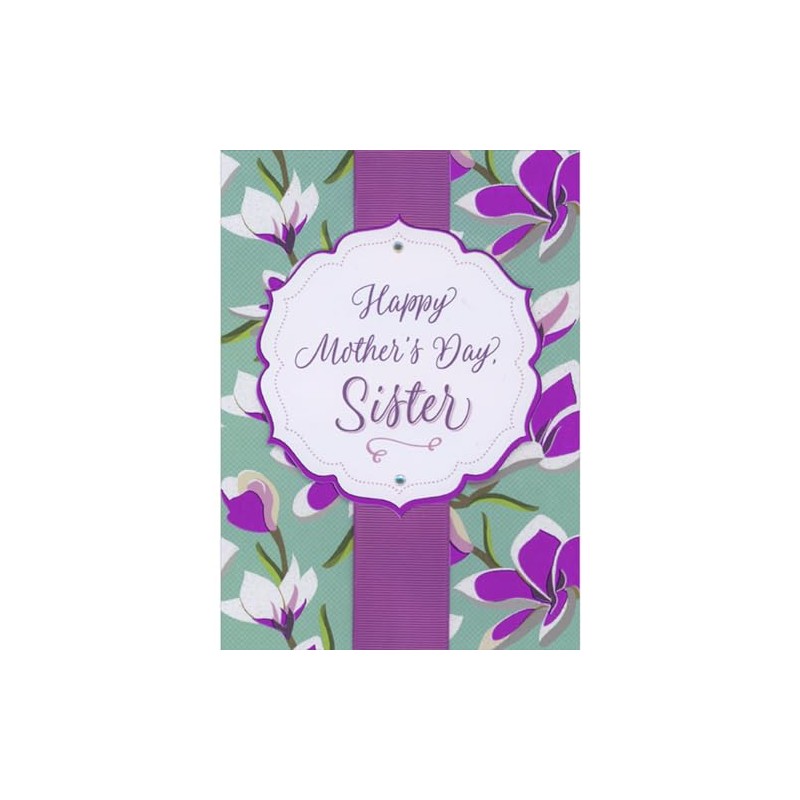 Designer Greetings Purple Foil Bordered 3D Tip-On Banner, Wide Purple Ribbon, Flowers on Turquoise Hand Decorated Mother's Day Card for Sister