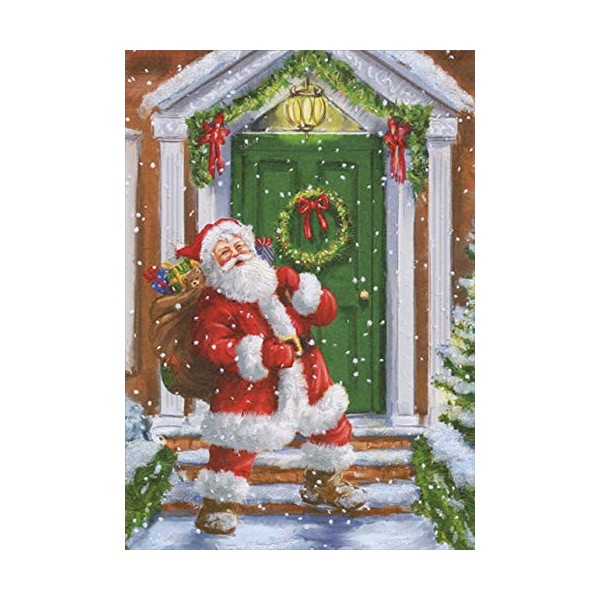 Designer Greetings Santa Claus at Green Door with Wreath Box of 18 Christmas Cards