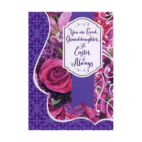 Designer Greetings You are Loved : Purple with Vine Patterns : Large Pink Flower Granddaughter Easter Card