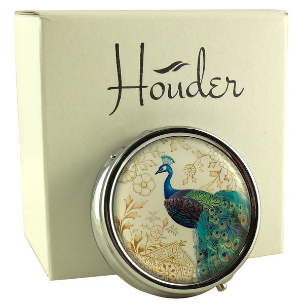 Designer Pill Box by Houder - Decorative Pill Case with Gift Box - Carry Your Meds in Style (Peacock)