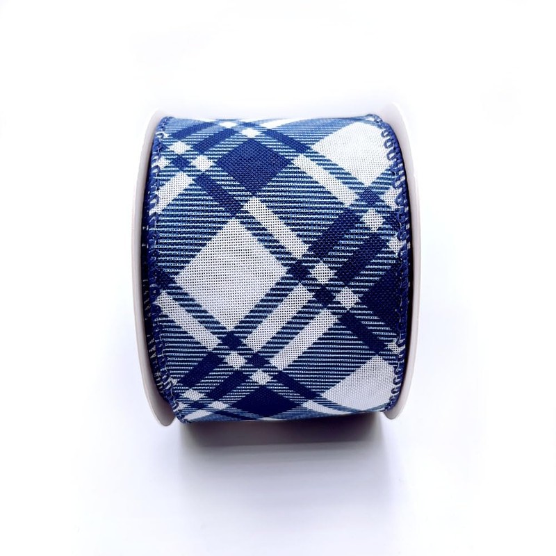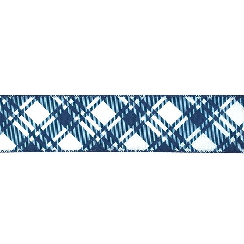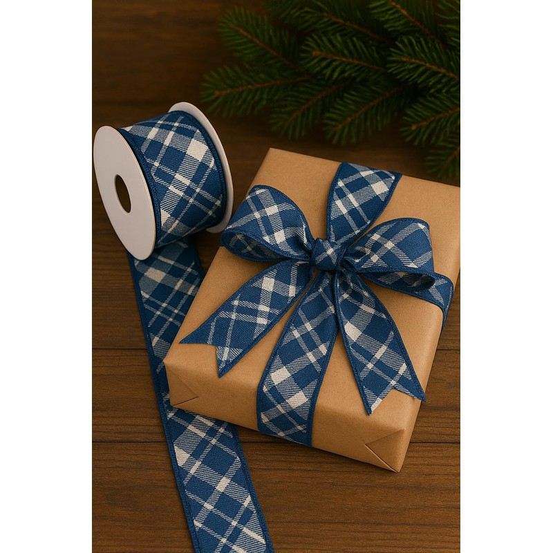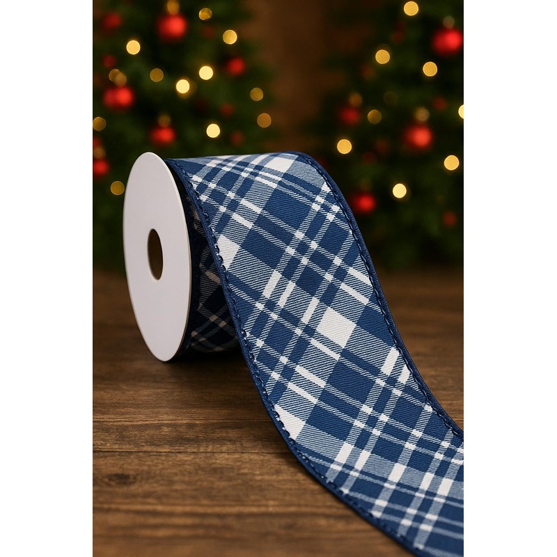 Designer’s Shop Holiday Tartan Plaid Wired Edge Ribbon 2.5” x 10 Yard for DIY Crafting, Holiday Bow Tree Wreath Decorating (Blue) WR 63-5218