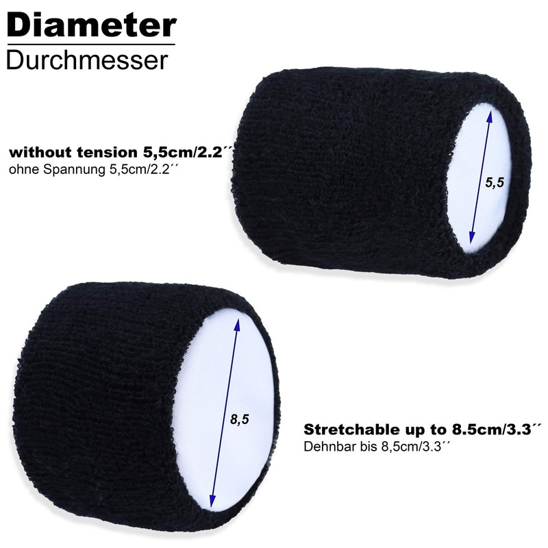 - Material: The sweatband is made of soft, double-layer terry cloth and is very elastic. (80% cotton, 20% elastane). Thanks to the elastane content of the accessory, the bracelet is well stretchy and adapts perfectly to the wrist of the wearer.