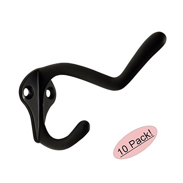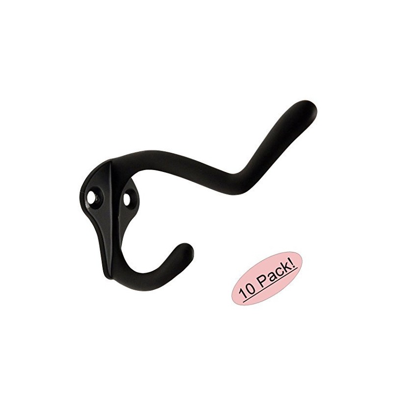 Designers Impressions 57569 Flat Black Light Duty Coat & Hat Hook - 10 Pack