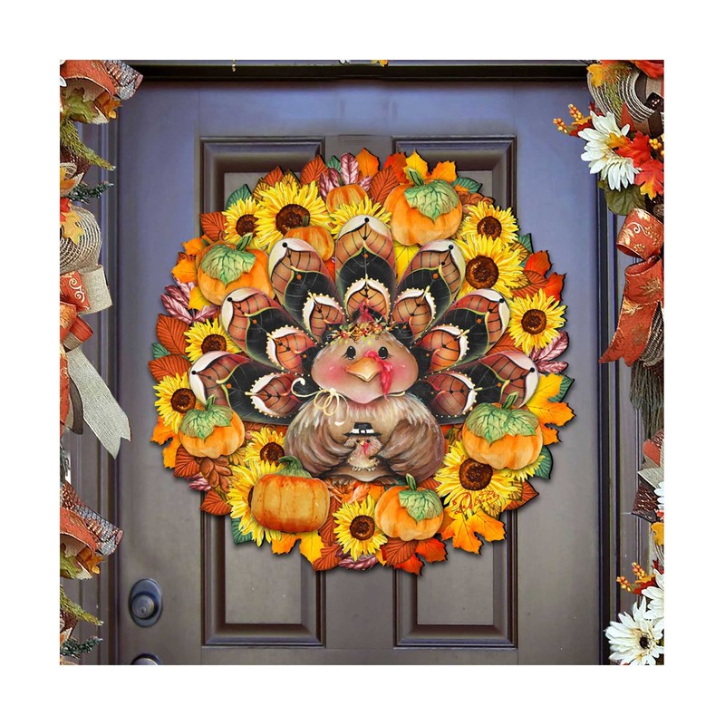 Designocracy Turkey Holiday Door Wreath by J. Mills Price - 8185305-3H-MP