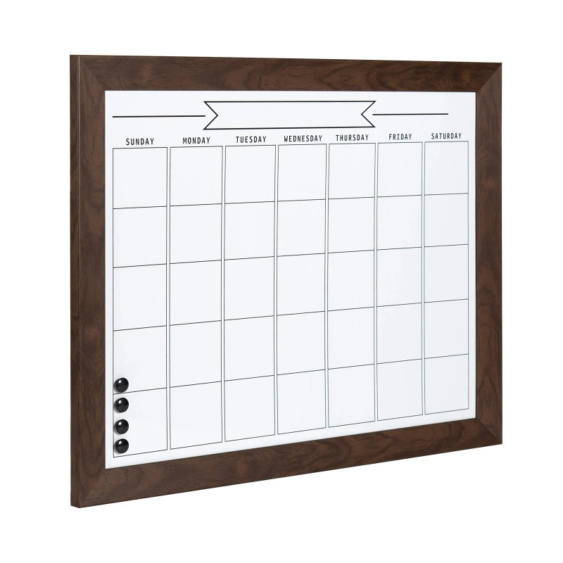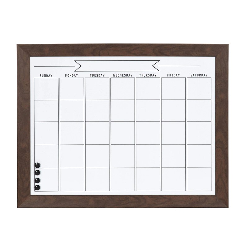 Beatrice Framed Magnetic Dry Erase Monthly Calendar, 23x29, Walnut Brown
