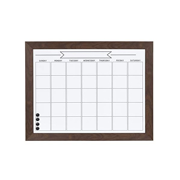 DesignOvation Beatrice Framed Magnetic Dry Erase Monthly Calendar, 23x29, Walnut Brown