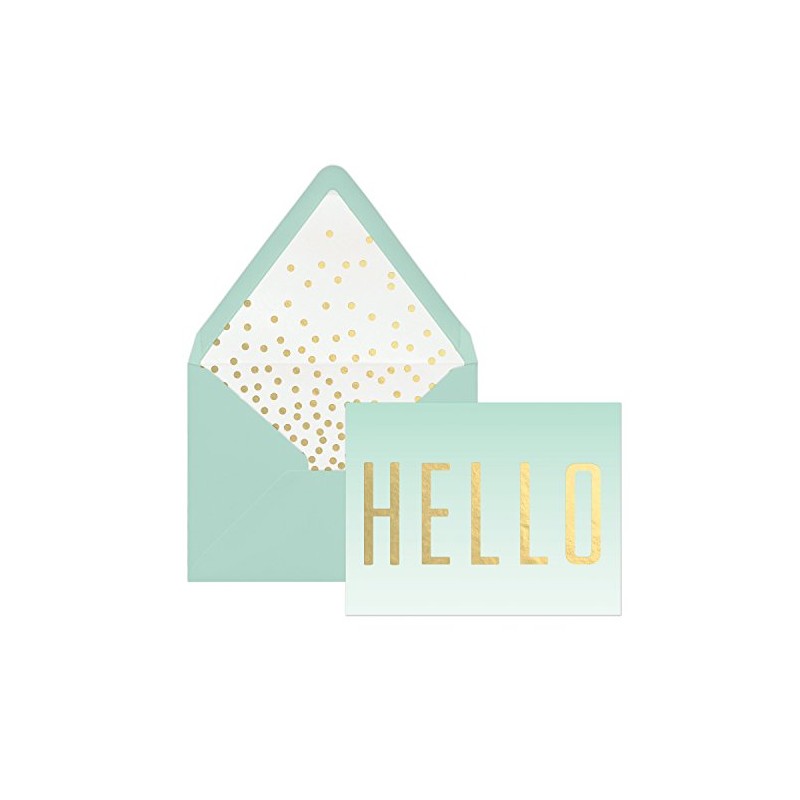 DesignWorks Ink 12-Count Boxed Blank Note Cards, Blue Ombre- Hello