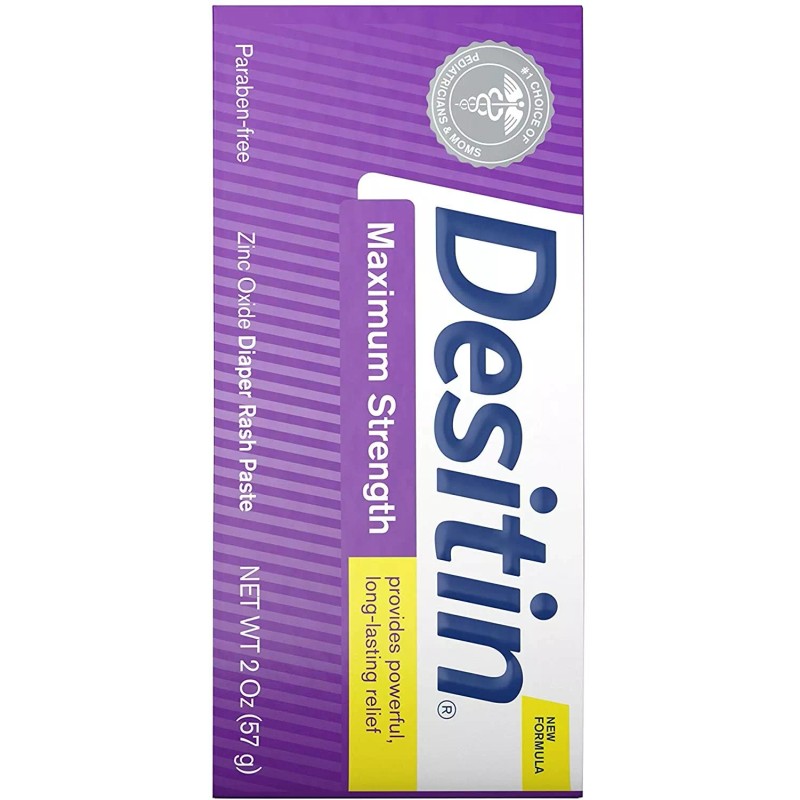 - 2-ounce tube of Desitin Maximum Strength Diaper Rash Paste with 40%zinc oxide works on contact to treat and prevent diaper rash discomfort