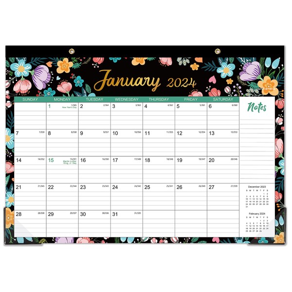 Desk Calendar 2024-2024 Desk Calendar, 12 Monthly Desk/Wall Calendar 2-in-1, Jan. 2024 - Dec. 2024, 16.8" x 12", Desk Calendar with Thick Paper + Corner Protectors + Large Ruled Blocks - Floral