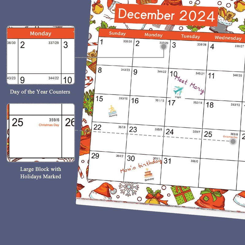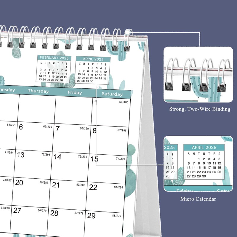 - THICK PAPER - Made of thick, premium paper to prevent ink penetration through the paper. This cute calendar is backed up with white thick board to make it a standing desk calendar.