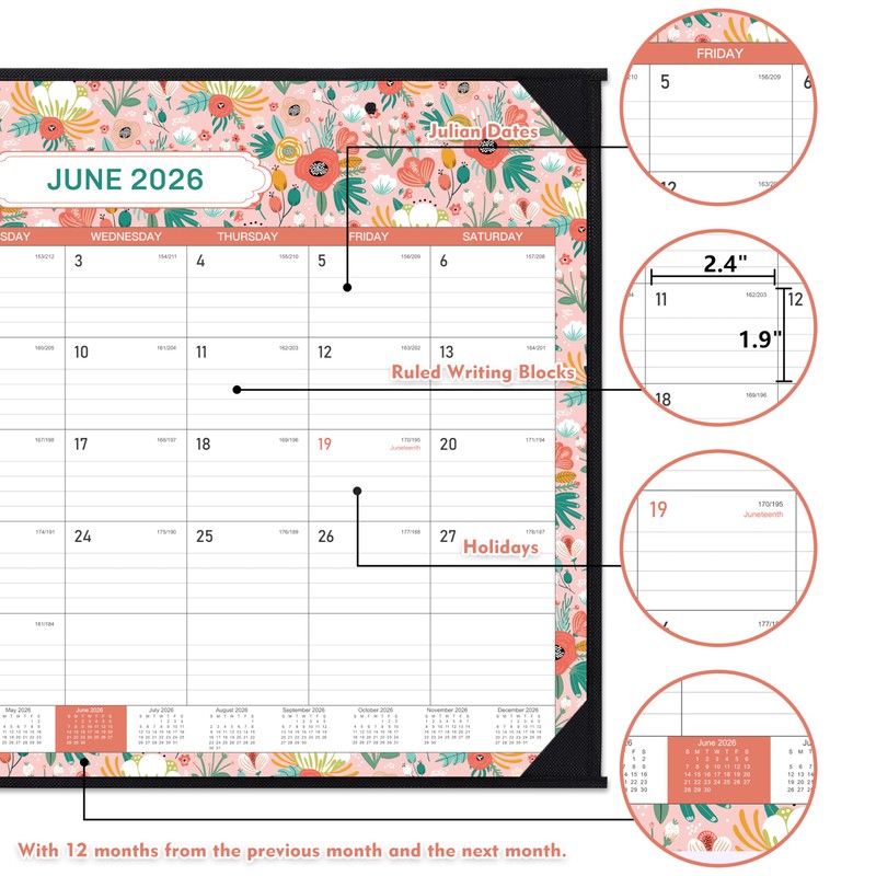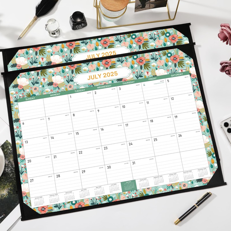 • 2025-2026 Calendar - Our large wall calendar 2025-2026 has 18 tear-off sheets, so the perforated pages can be torn off easily. Transparent corner protectors keep pages of this desk mat 2025 in secure. The large desk calendar 2025-2026 also has a cardboard back support.