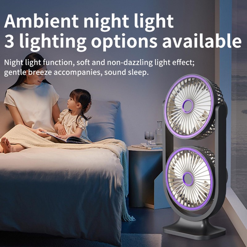 Desk Fan, Rechargeable Portable Fan With 360 ° Rotate Head, LED Digital Power display&3-Speed Wind Adjustment Function, Ultra Quiet Small Fan For Home, Kitchen,Travel, Camping, Bedroom, Office(Double)