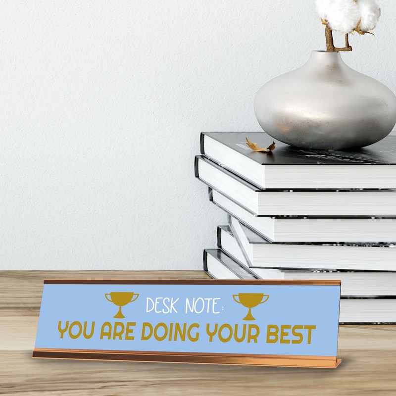 Signs ByLITA Novelty Desk Sign Nameplate "Desk note: You Are Doing Your Best". Fun novelty desk sign gift idea for friends, family colleagues, bosses, managers and more. The premium sublimated plastic nameplate comes with a sturdy colored aluminium frame. Great office or desk sign for letting them know you're doing your best.