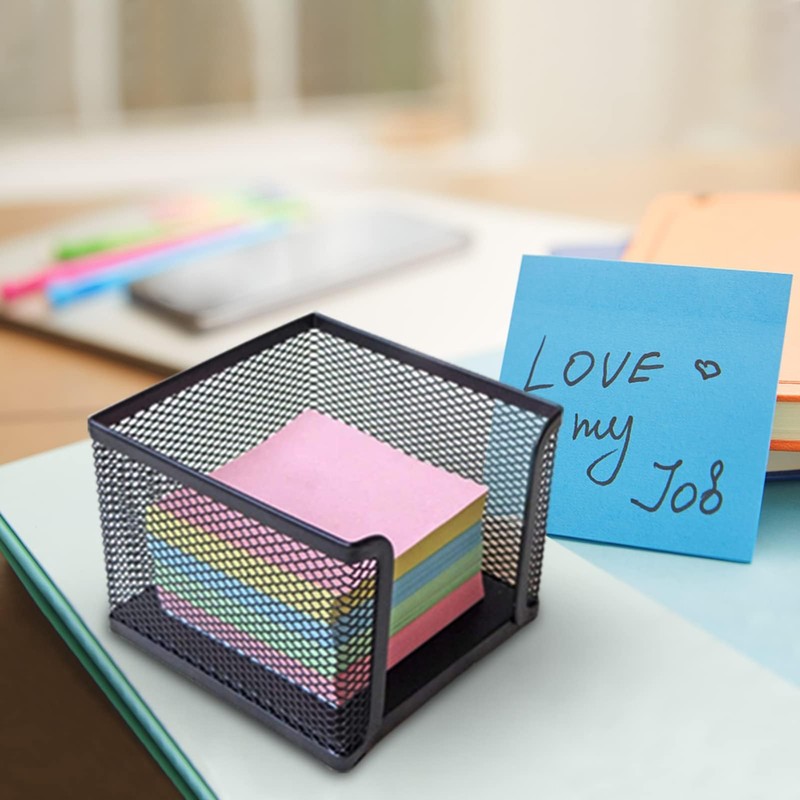 - BASIC SIZE: Desk memo holder metal memo pads 10,4 cmx7,9 cm/4,1x /3,1 inch.Desk memo holder wire mesh office business sticky note box notepad holder is universal for sticky notes of all shapes and in most sizes