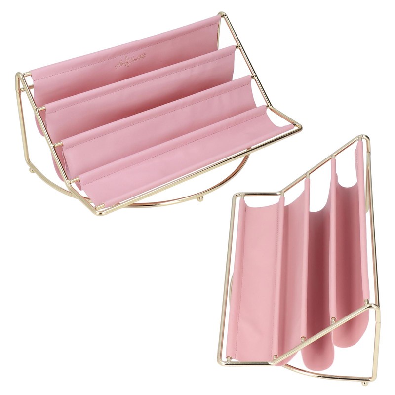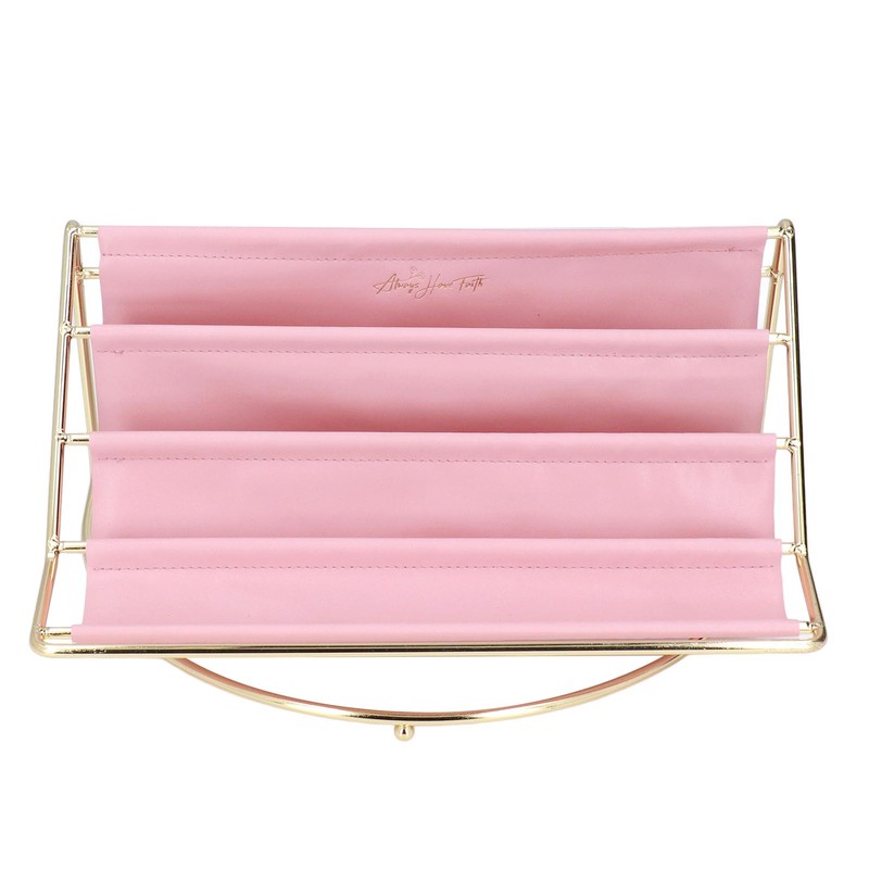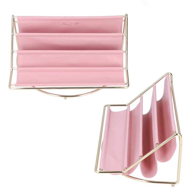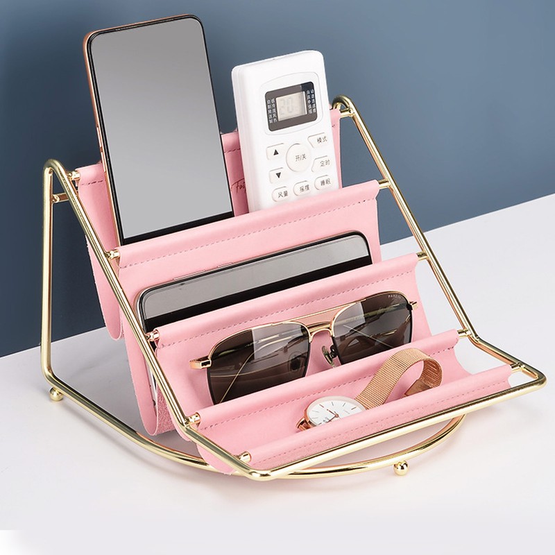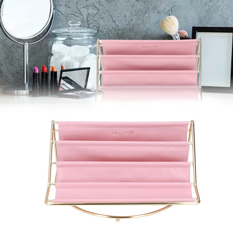 Desk Shelf Organizer Multi Layer Exquisite Premium Metal Leather Durable Stable Wide Application Desktop OrganizerPink