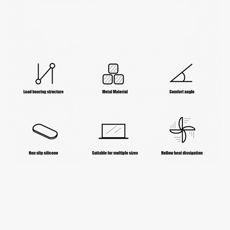 1、[Ergonomic Design] The notebook stand can elevate your notebook to a perfect sight level, helping to reduce awkward postures and relieve the stiffness of the neck and shoulders. 2、[Reasonable Structure] The stand is tilted at a perfect angle to protect your wrist and maintain your neutral posture. The design of protective hook and non slip pad ensures smooth typing. 3、[Highly Compatible] Fit for MacBook 12 13, for MacBook Air 13, for MacBook Pro 13 15 2018 2017 2016, for Lenovo ThinkPad, for Dell Inspiron XPS, for HP, for ASUS, for Chromebook and other laptops (10in, 11in, 12in, 13in, 13.3in, 14in, 15in, 15.4in, 15.6in, 17.3in, etc.). 4、[Aluminum Alloy Material] Optimize cooling to prevent your laptop from overheating during use. The ventilation design can provide more airflow to cool your laptop and extend the battery life of your laptop. 5、[Triangular Support Structure] Good stability, fixed angle, to ensure the safe support of your laptop, good slip resistance, and protect your laptop from sliding and scratching.