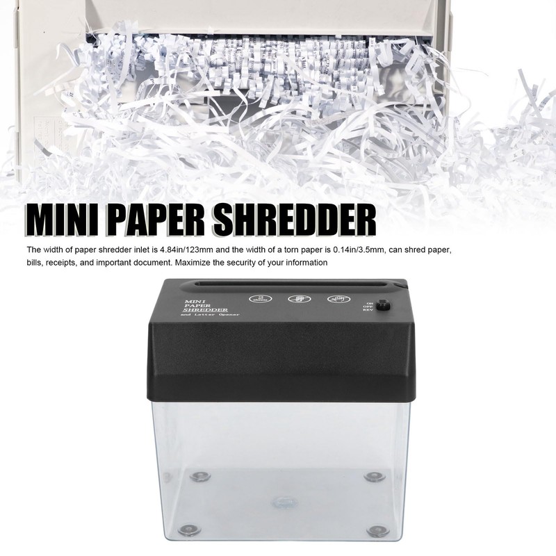 - [Easy Operation] With a simple on, off, and reverse switch, this shredder operates quietly, shredding paper in seconds. usb or battery-powered for convenience.