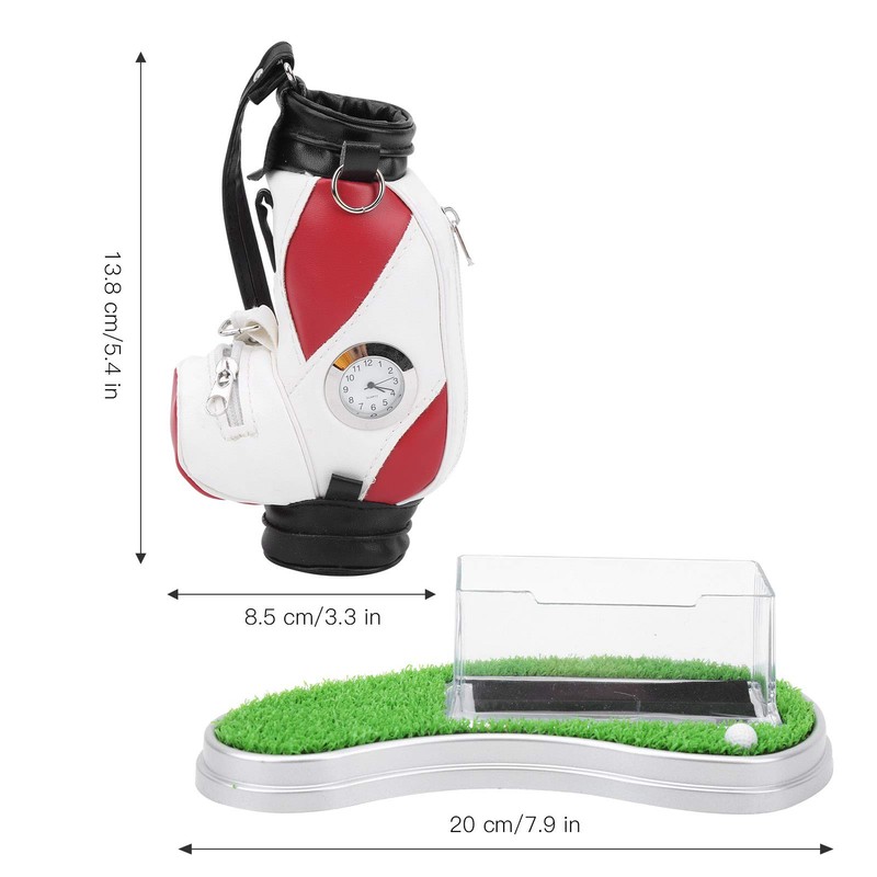 Desktop Pen Set, Club Pen Set Mini Desktop Pen Holder with Clock Card Case & 3 Ballpoint Pens Desk Decoration Golfer Fans
