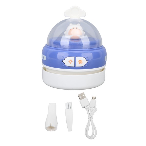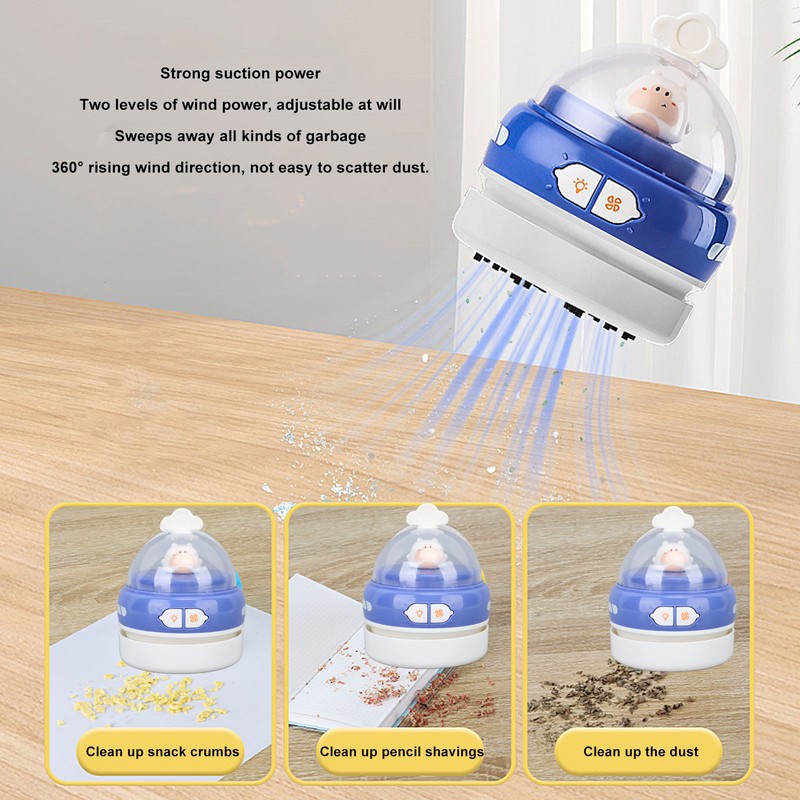 Desktop Vacuum Cleaner Portable Cordless USB Charging Handheld Efficient with Night Light Table Dust Sweeper for Pencil Eraser Shavings Dark Blue