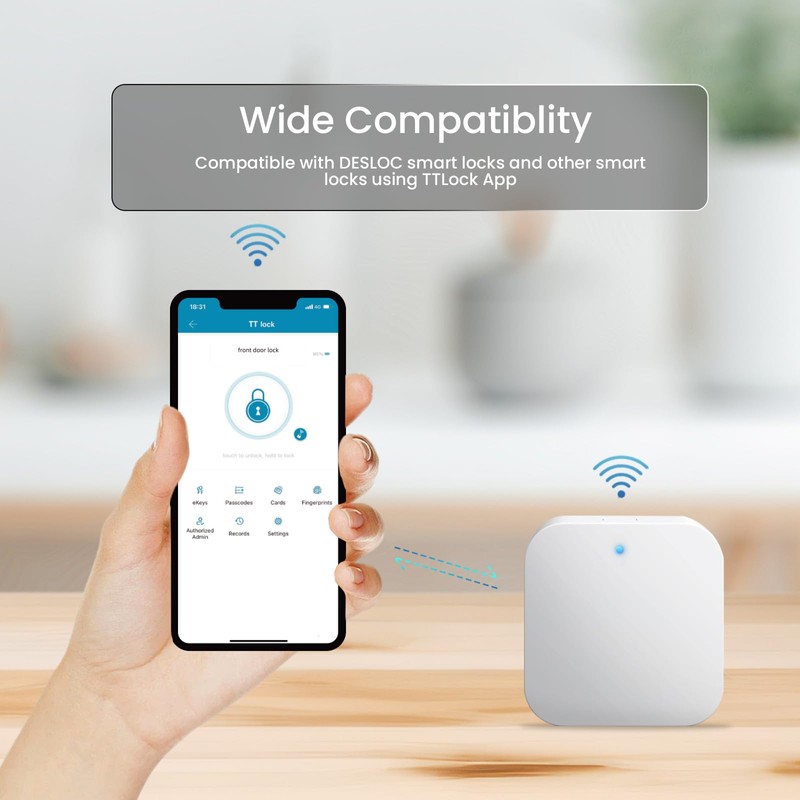 - 𝐖𝐢𝐝𝐞 𝐂𝐨𝐦𝐩𝐚𝐭𝐢𝐛𝐢𝐥𝐢𝐭𝐲: Compatible with DESLOC smart locks and other locks that use the TTLock App.