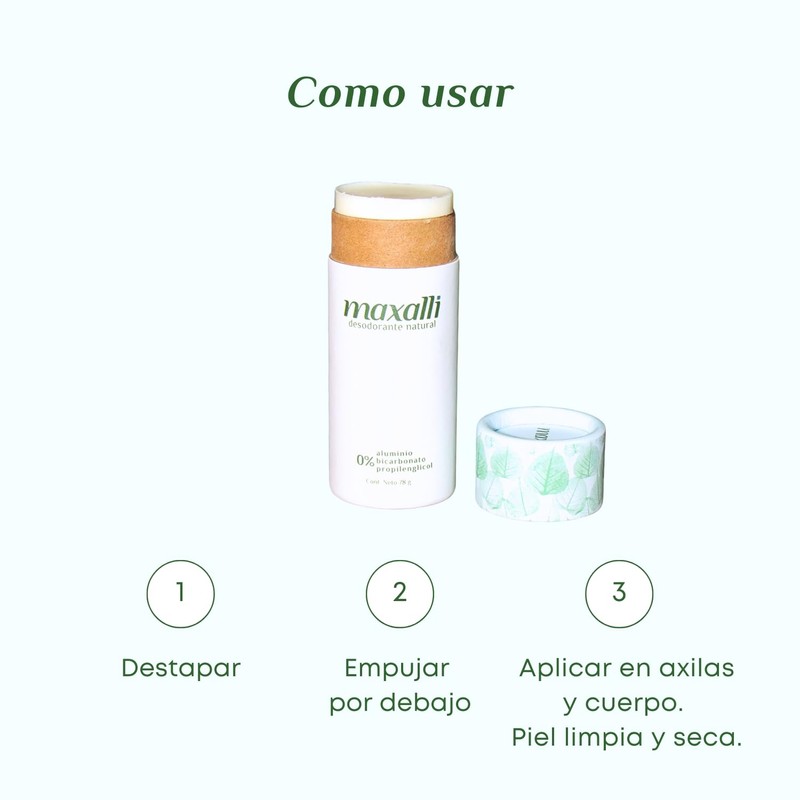• Desodorante ecológico zero waste empacado en tubo de cartón.