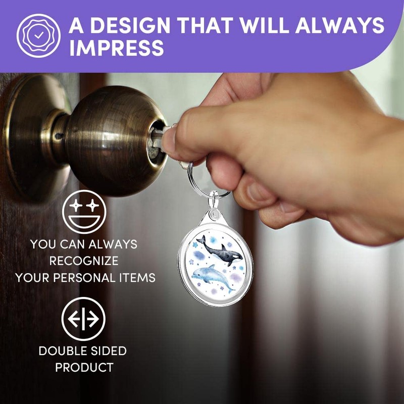 Destination Vinyl ltd 1 x Round Photo Keyring Watercolour Whales & Dolphins Pattern |Keychain|Keyring|Charm| #170919
