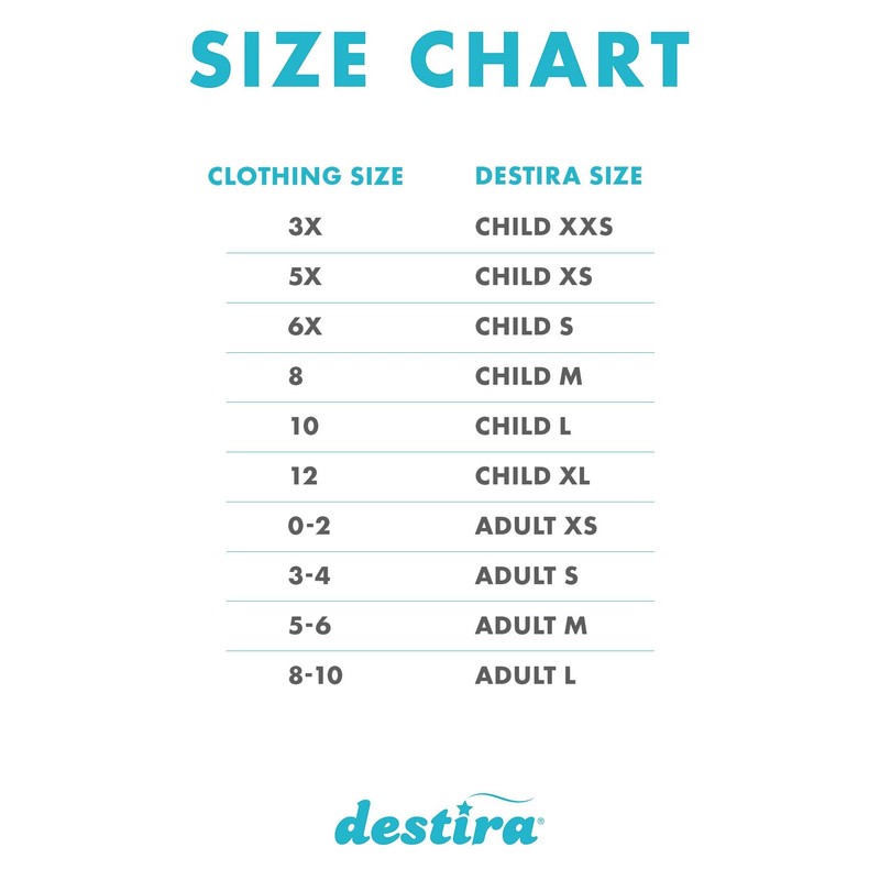 - PERFECT FIT: Our leotards are made for comfort and confidence. Refer to the Destira Sizing Chart for the perfect fit and when in doubt - Size up! We fit true to your gymnast's clothing size, so if she's wearing a Child Large (10/12) in clothing, she'll wear the same in Destira.