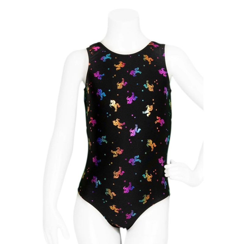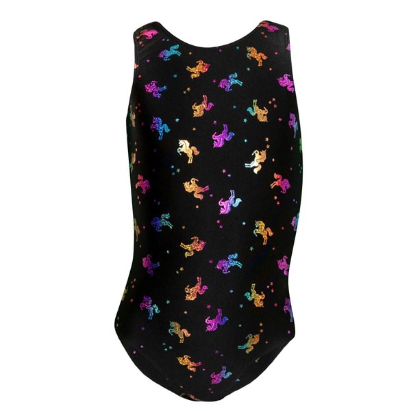 - MAGICAL UNICORN PATTERN - Step into a world of whimsy with the Prancing With The Stars gymnastics leotard for girls. It features a solid black base, adorned with shiny rainbow unicorns across the entire body. This captivating design is perfect for young gymnasts and dancers, adding a touch of magic to every move.