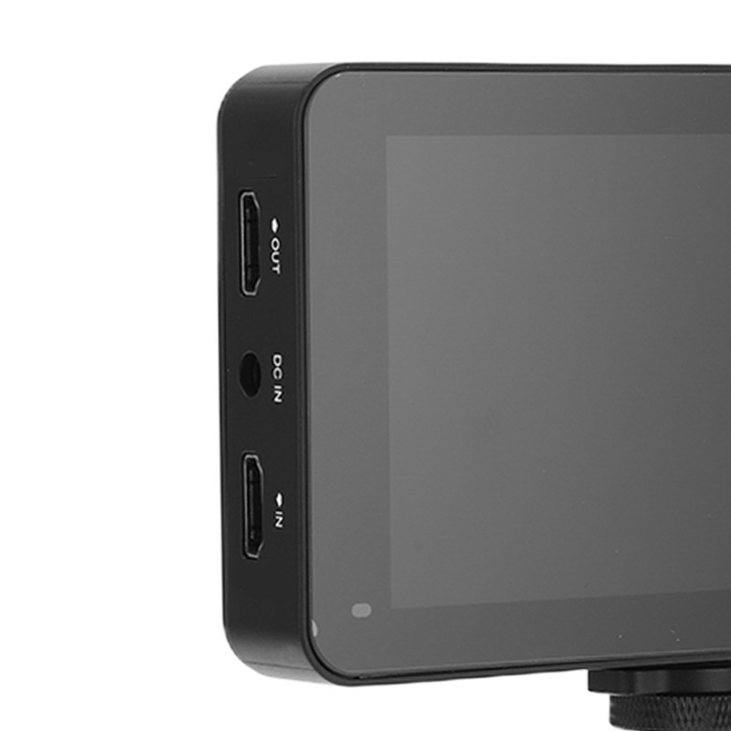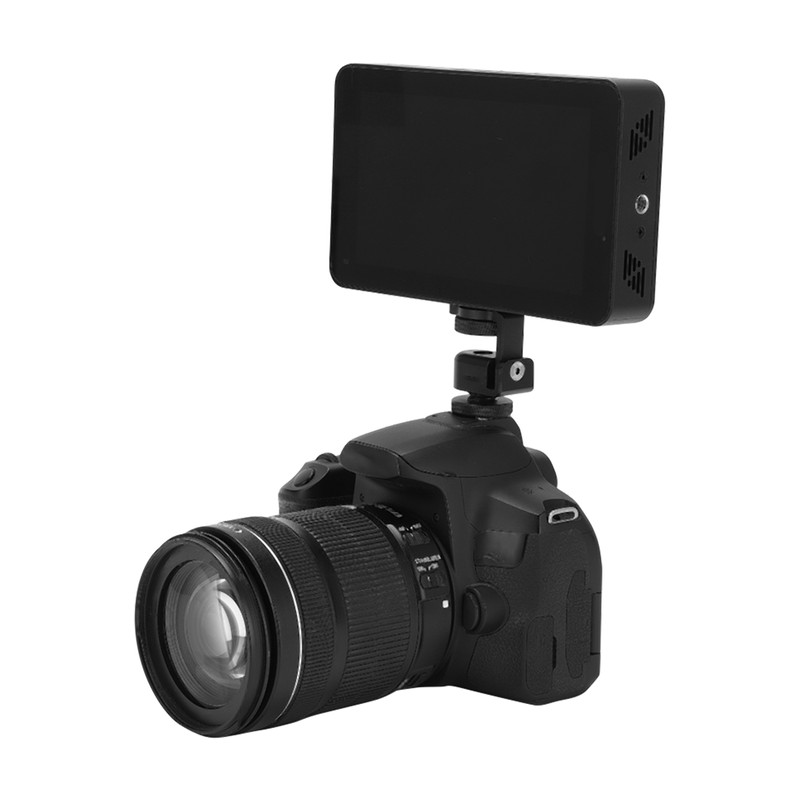 1、Adopts full HD 5.5 inch 4K display, physical resolution 1920x1080, 1000: 1 high contrast, 4K HD input/output, support 4K 30Hz screen preview and 3.5mm audio monitor. 2、2800 Nits is not afraid of outdoor glare, the picture shows clearly; supports brightness histogram, RGB histogram, brightness waveform, RGB waveform, false color , zebra crossing, vector, full waveform, etc. 3、HDR monitor supports both HLG/PQ modes, and HDR can provide more dynamic range and image details than common images; equipped with memory card, built in multiple log files, can lead in multiple groups to choose loading, implement fast comparison switching. 4、Support full screen touch control, convenience, touch sensitive support, double finger scaling, and drag the viewing arbitrary details; use F550/F570/F970 series battery or E6 battery, support 8V DC port reverse power supply for camera. 5、Built in light sensing module can automatically adjust the screen brightness, while left side of the screen can adjust the brightness, and the right side can adjust the volume ; Built in heat dissipation module and low power fan multi‑directional cooling hole design, heat dissipation performance, more effective cooling effect.