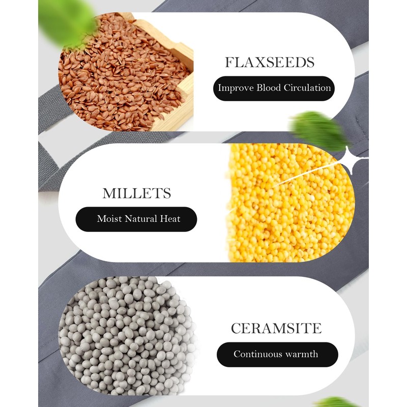 - 【Natural Fillings for Comforting Texture】: Within the heated neck wrap, discover a thoughtful blend of natural flaxseeds, clay beads and millet. This unique combination provides comforting weight and aligns with environmental responsibility.