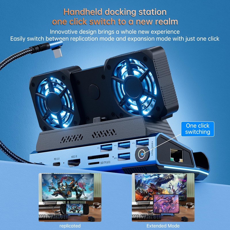 - 14 in-1 Handheld Console Dock:Transforms your Steam Deck OLED/ASUS ROG ALLY/Legion Go's USB Type-C into 13 ports: 4K@60Hz, Gigabit Ethernet (1000Mbps),HDMI2.0,1 USB3.0 (5Gbps), 3 USB2.0, USB Type C PD 3.0 (100W).SD/TF read slot, this handheld console dock combines hub, stand base,heat sink,it is a professional handheld gaming dock station