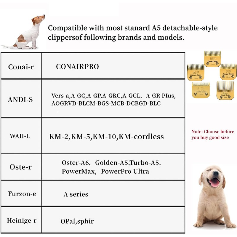 Detachable Pet Dog Grooming Clipper Ceramic Blades Set,Compatible with Andis,Oster A5,Wahl KM10 Series Clippers,Gold (7FC# 2 Pack)