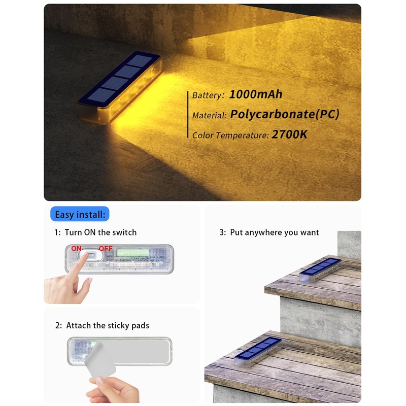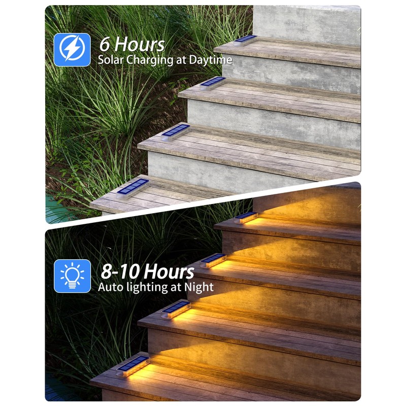 - 【Sleek & Functional】The Solar Step Lights for outside makes a simple and practical style,designed for stairs and walkways,providing attractive and bright added lighting to make patio steps safe and charming!