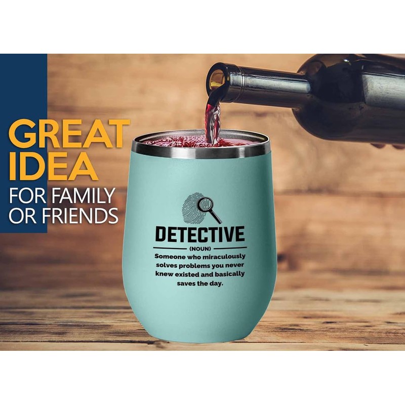 Detective Teal Edition Wine Tumbler 12oz - Detective def - Police Officer Cop Patrol Detective Sheriff Law Enforcement Police Academy Student Police Chief