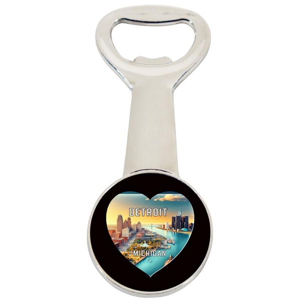 Detroit Michigan Travel Souvenir Destination Heart Shape Design Magnetic Bottle Opener Single