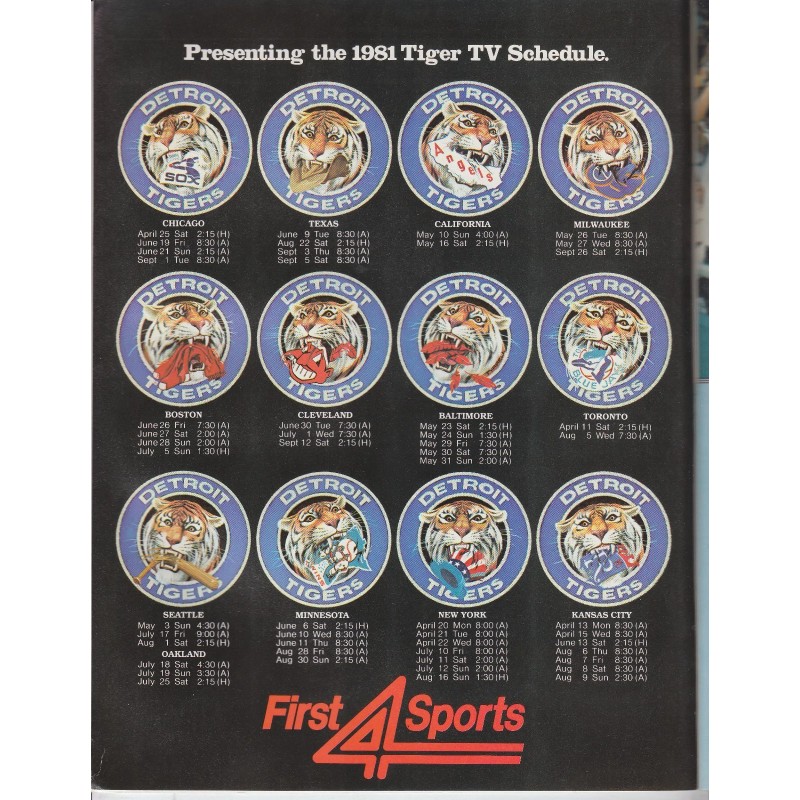 Detroit Tigers Official 1981 Baseball Yearbook Program Magazine Sparky Anderson