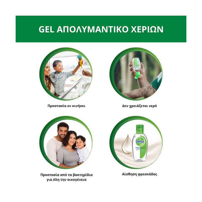 Dettol Healthy Touch Hand Hygiene Gel kills 99.9% of bacteria and viruses, providing on the go protection with no need for soap or water.