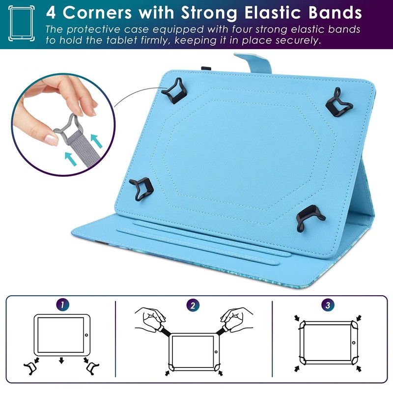 - 💕【Multi-Functions】-[1] Build-in 3 slots to store your cards/ change/ notes etc. [2] Equipped with strong elastic band buttons on 4 corners to hold the tablet firmly, keeping it in place securely. -[3] Magnetic button closure design ensures cover securely closed. Works with or without the keyboard (NOT included the keyboard).