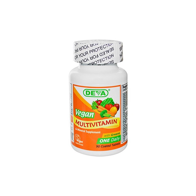 Get the essential vitamins and minerals your body needs with DEVA Vegan Multivitamin. Balanced, multiple vitamin and mineral formula enriched with special herbs specially formulated for vegans and vegetarians. DEVA Nutrition is pleased to offer this high-potency balanced multivitamin and mineral, specially formulated for the unique nutritional needs of vegans and vegetarians. The DEVA vegan multivitamin places more emphasis on vitamin B-12 and iron because vegetarians and vegans are more likely to be deficient in B-12 and iron. Each oblong shaped tablet measures 13/16" long by 5/16" wide. The tablets are well coated with vegetable glaze for easy swallowing. DEVA Vegan Multivitamin is 100% animal-free, certified vegan by the Vegan Society, and guaranteed for its purity, freshness, and labeled potency. DEVA Vegan Multivitamin is an exceptional quality multivitamin that combines 1 per day convenience with its reasonable cost. Each bottle can last up to 3 months, making the vegan multivitamin very affordable at this special price. Remember that the multivitamin is 100% vegan, vegetarian, and certified by the Vegan Society, the non-profit organization that actually invented the word "vegan." This product does not contain animal products, derivatives or by-products. 100% vegetarian, vegan. The 1-A-Day Vegan Multivitamin is certified vegan by the Vegan Society.