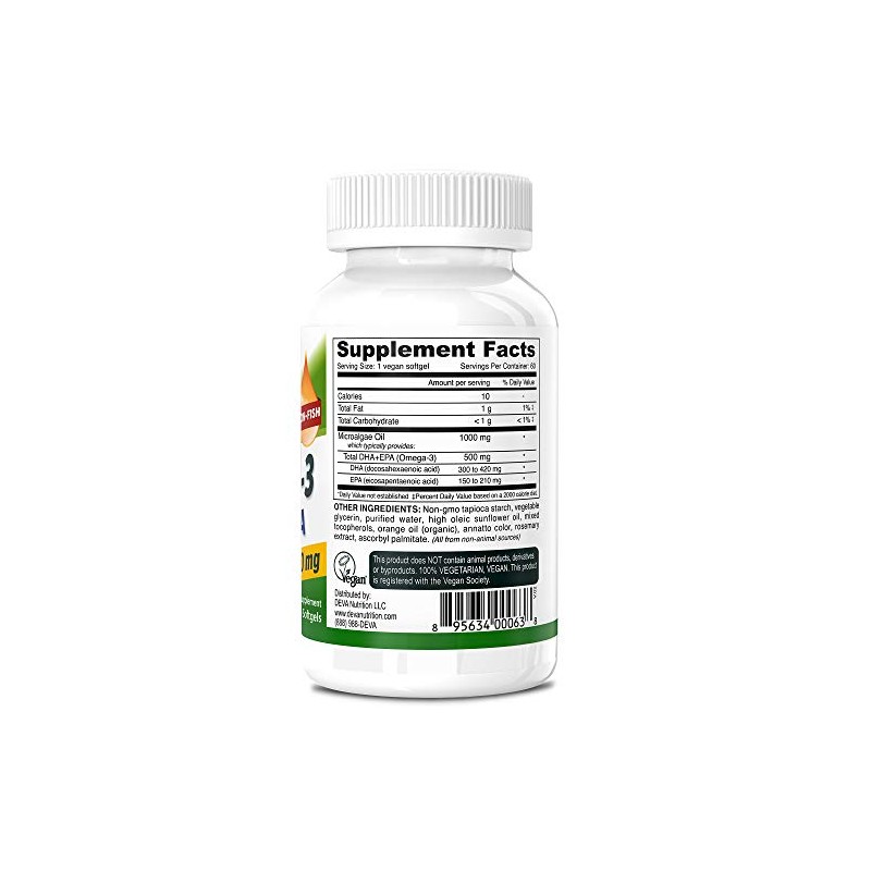 Deva Vegano Omega-3 DHA EPA Suplemento Una vez por da Softgel 500 mg Libre de carragenano Sin gelatina Sin pescado Aceite de algas omega-3 cidos