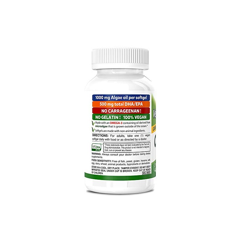 🌟 ⭐ Deva Vegano Omega-3 DHA EPA Suplemento – Una vez por día Softgel 500 mg – Libre de carragenano – Sin gelatina – Sin pescado – Aceite de algas omega-3 ácidos grasos – 60 cápsulas blandas ⭐ 🌟