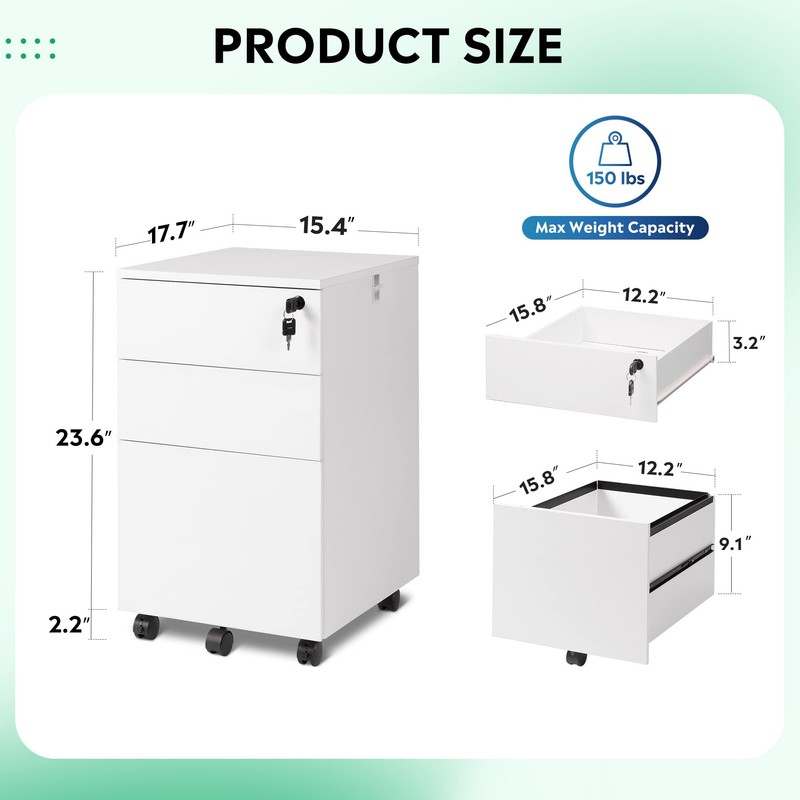 - LOCKABLE FILE CABINET: This 3-drawer file cabinet with 1 lock for first drawer, fits under most desks for home and office, keep your work space organized and neat.