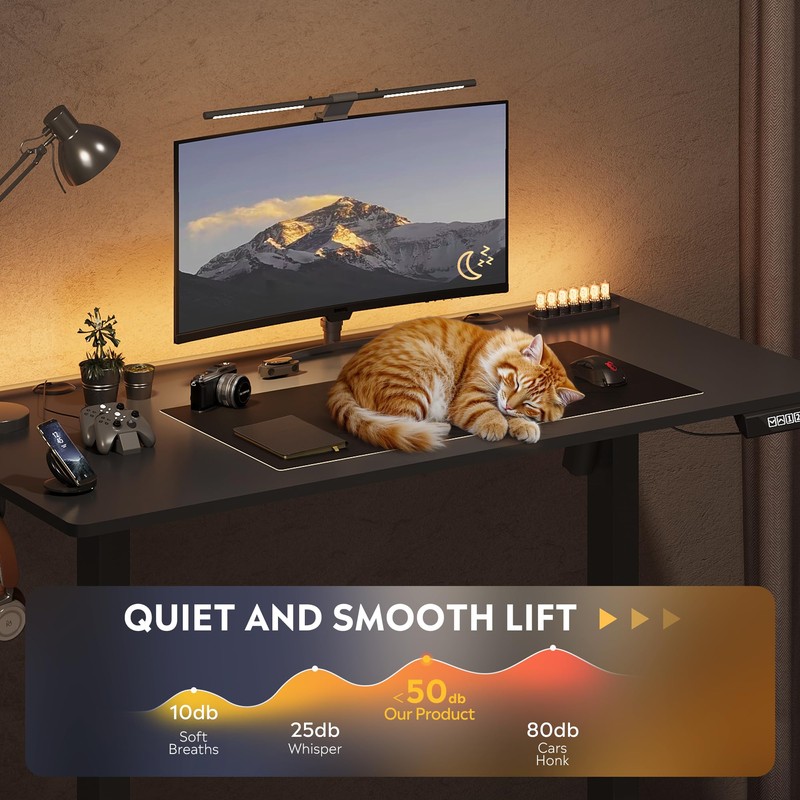 - Customized Sit Stand Desk : The reliable motor operates quietly (under 45 dB)and smoothly, all your things stay steady&secure in motion. The intuitive control panel allows you to preset 3 preferred heights, switch between sitting and standing positions has never been easier. Child lock for total peace of mind.