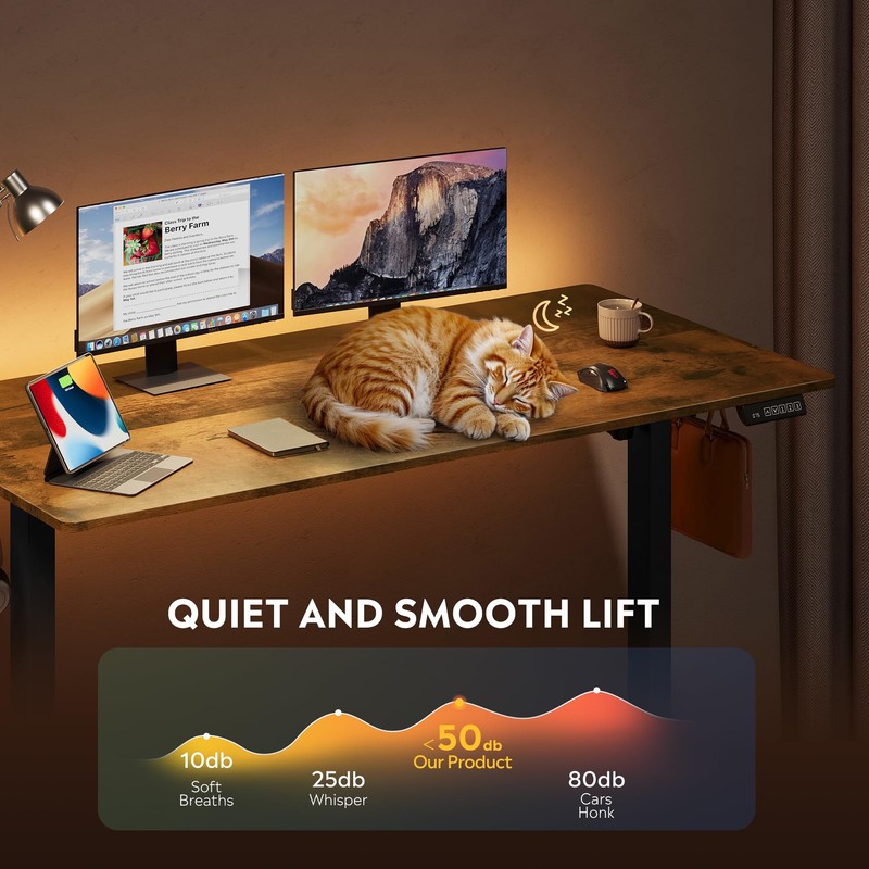 - Customized Sit Stand Desk : The reliable motor operates quietly (under 45 dB)and smoothly, all your things stay steady&secure in motion. The intuitive control panel allows you to preset 3 preferred heights, switch between sitting and standing positions has never been easier. Child lock for total peace of mind.