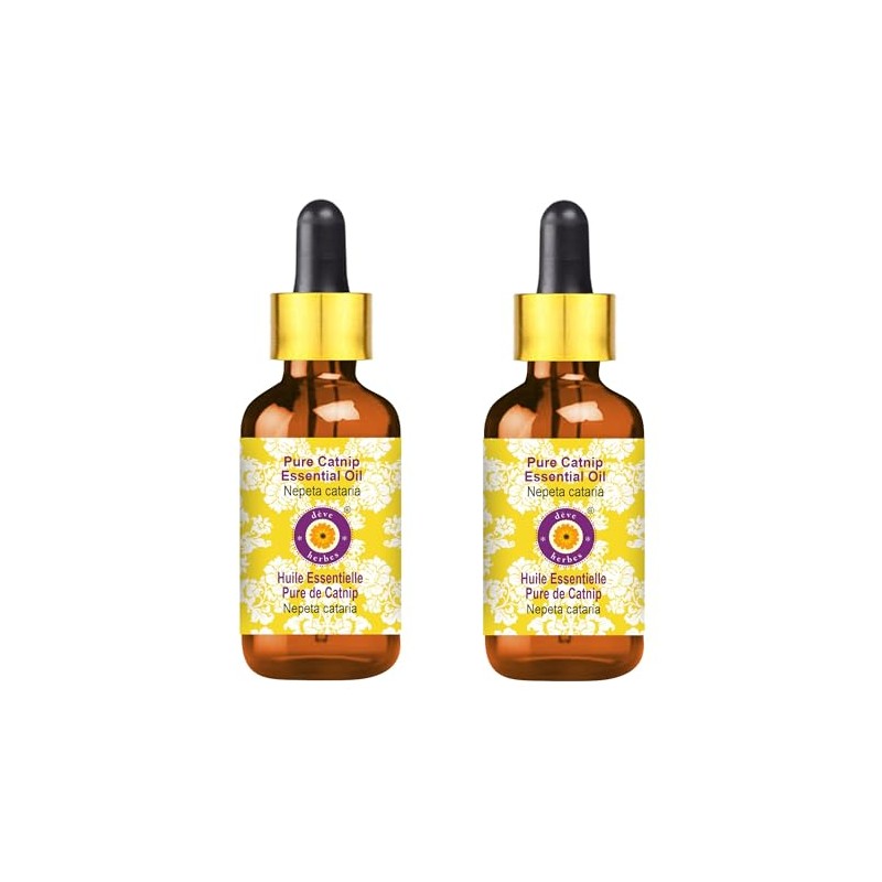 Deve Herbes Pure Catnip Essential Oil (Nepeta cataria) with Two Glass Droppers Steam Distilled (Pack of Two) 5ml X 2 (0.33 oz)