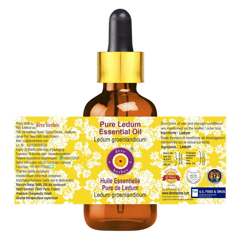 - QUANTITY - 100ml X 2 (6.76 oz) Container Type - High Quality Amber Glass Bottle with Glass Dropper. Method of Extraction: Steam Distillation Botanical Name -Ledum groenlandicum, Pure, Natural, Undiluted, Therapeutic Grade Essential Oil, Alcohol Free, Solvent Free, Vegan, Cruelty Free.