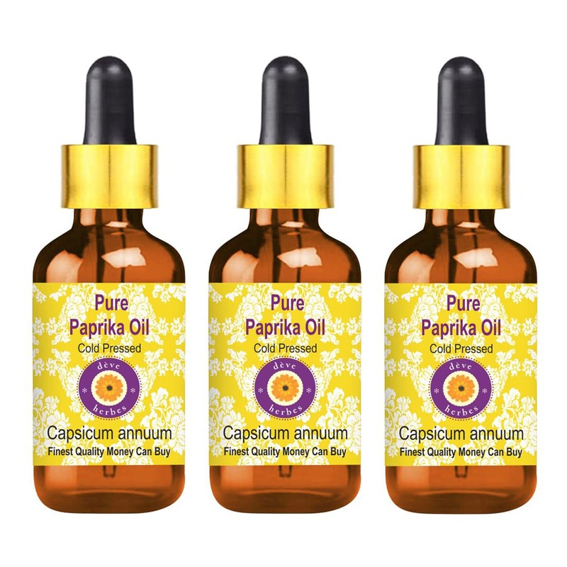 Deve Herbes Pure Paprika Oil (Capsicum annuum) with Glass Dropper Cold Pressed (Pack of Three) 100mlx3 (10 oz)