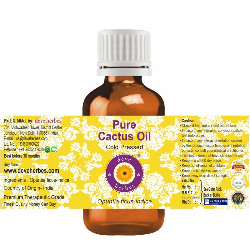 Deve herbes Pure Pure Cactus Oil (Opuntia ficus-indica) Cold Pressed, About Deve Herbes: We are the largest brand of essential & carrier oils in India, with satisfied customers in over 100 countries. We specialize in sourcing the finest natural oils from impeccable sources around the world. No one manufacturer or country can produce all oils of fine quality at one location/country. There are specialist manufacturers making a specific set of oils with natural ingredients specific to that region or country, for instance, best oregano oil is found in Moldova, best lavender in Spain, best Ajwain Essential oil is from Andes mountain in south America. Our oils are certified natural & pure with traceable origin & of the highest quality money can buy. We have a highly advanced testing apparatus. All our shipments have certificates of origin & are accepted only after rigorous testing for purity. We are also class-leading manufacturers of one of the finest ranges of natural personal care products in India. We endeavor to satisfy each & every one of our customers, Note: Best Before 36 months from the date of Packaging mentioned on the box.